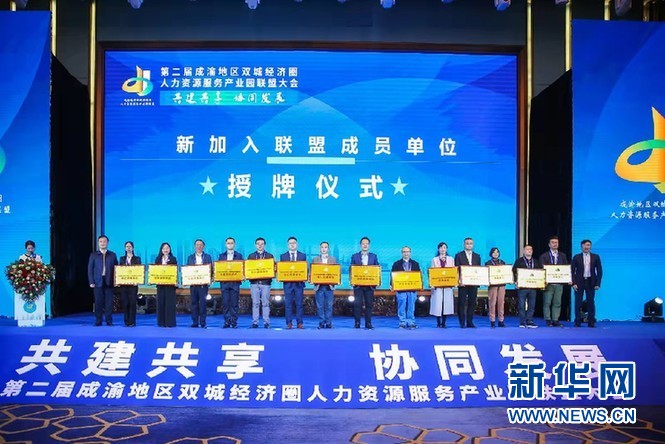 第二屆成渝地區(qū)雙城經(jīng)濟(jì)圈人力資源服務(wù)產(chǎn)業(yè)園聯(lián)盟大會授牌儀式。新華網(wǎng)發(fā)(重慶市人力社保局供圖)