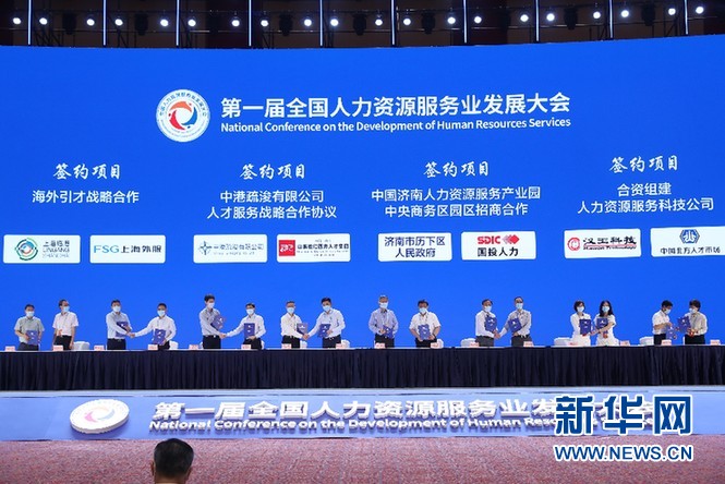第一屆全國人力資源服務(wù)業(yè)發(fā)展大會簽約儀式。新華網(wǎng)發(fā)(重慶市人力社保局供圖)